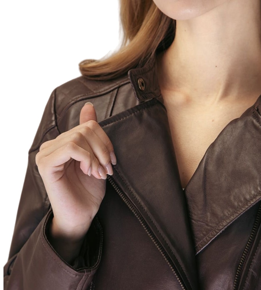 Schreibe die erste Rezension für „ESPRESSO Dark Brown Leather Jacket For Women“