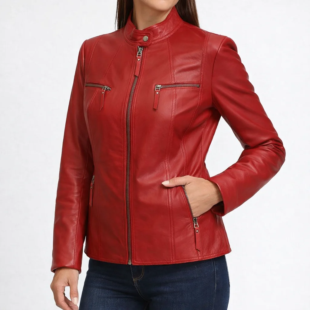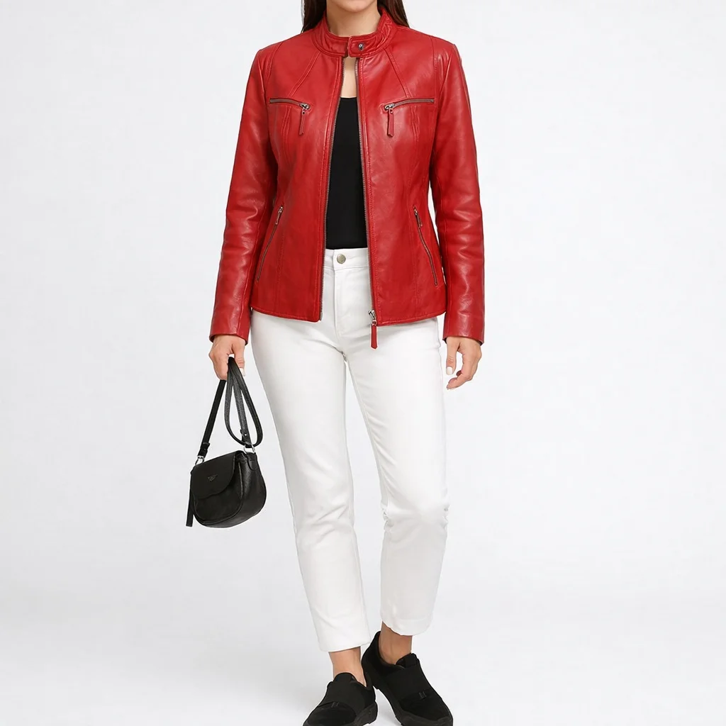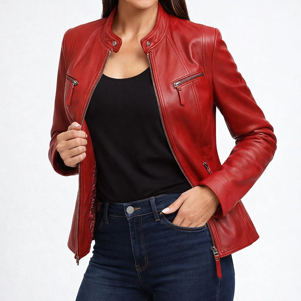 Be the first to review “CHIC Red Leather Jacket For Women”