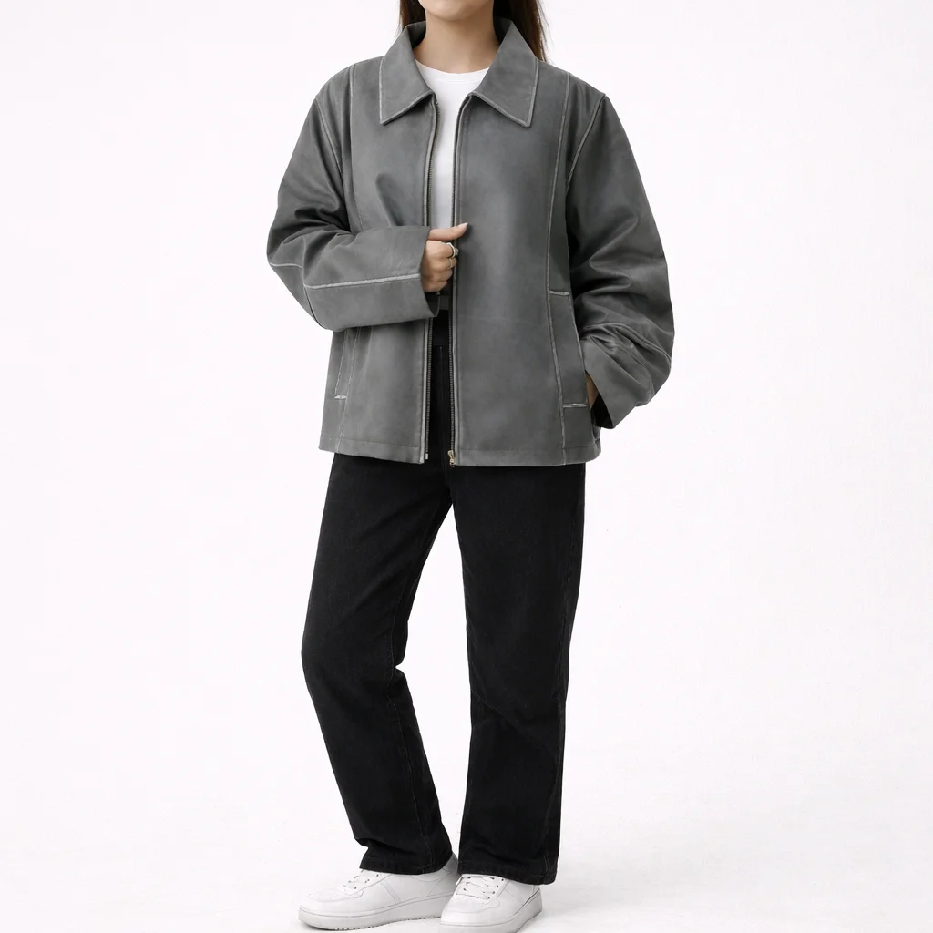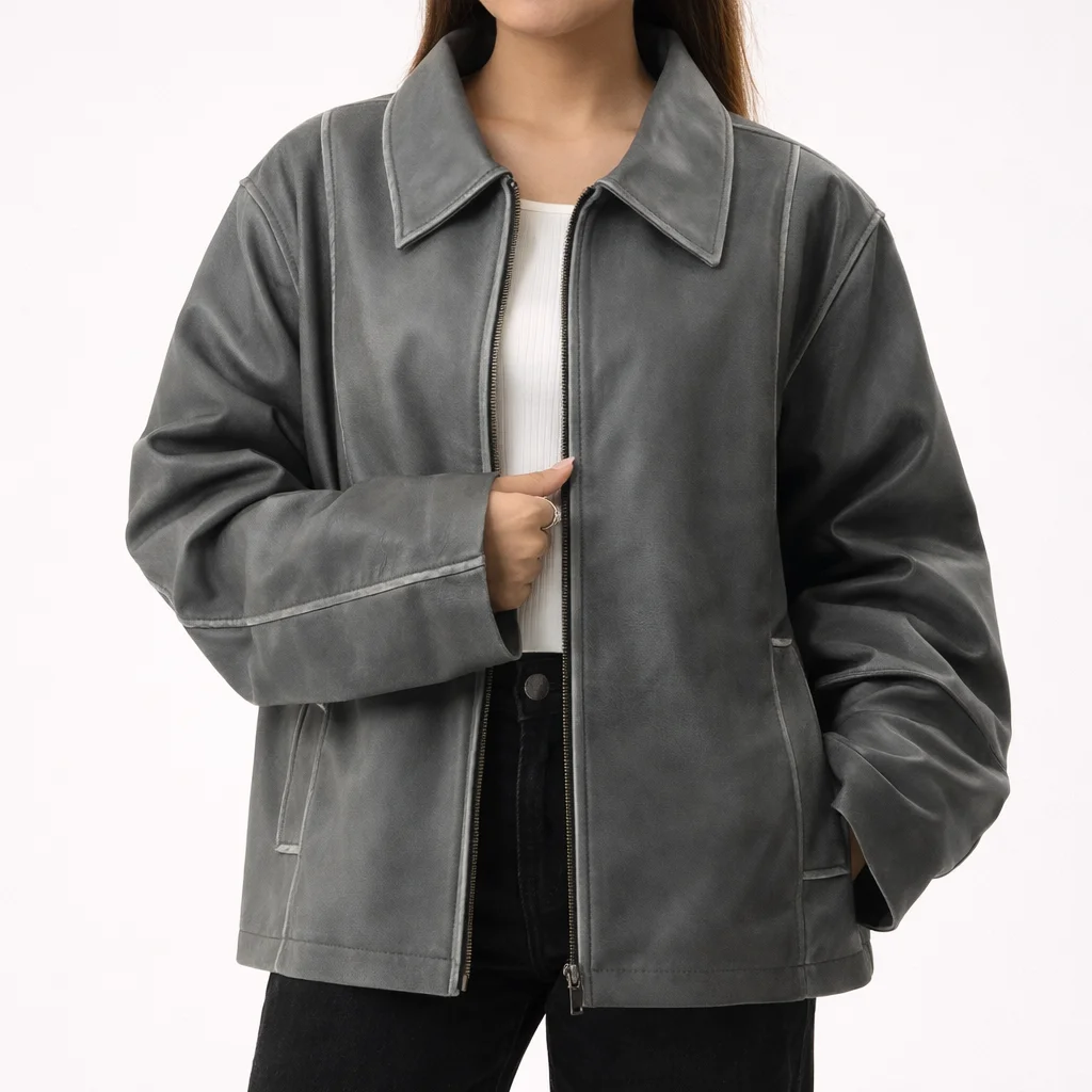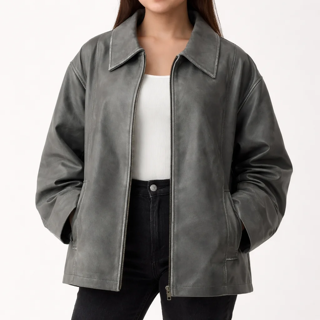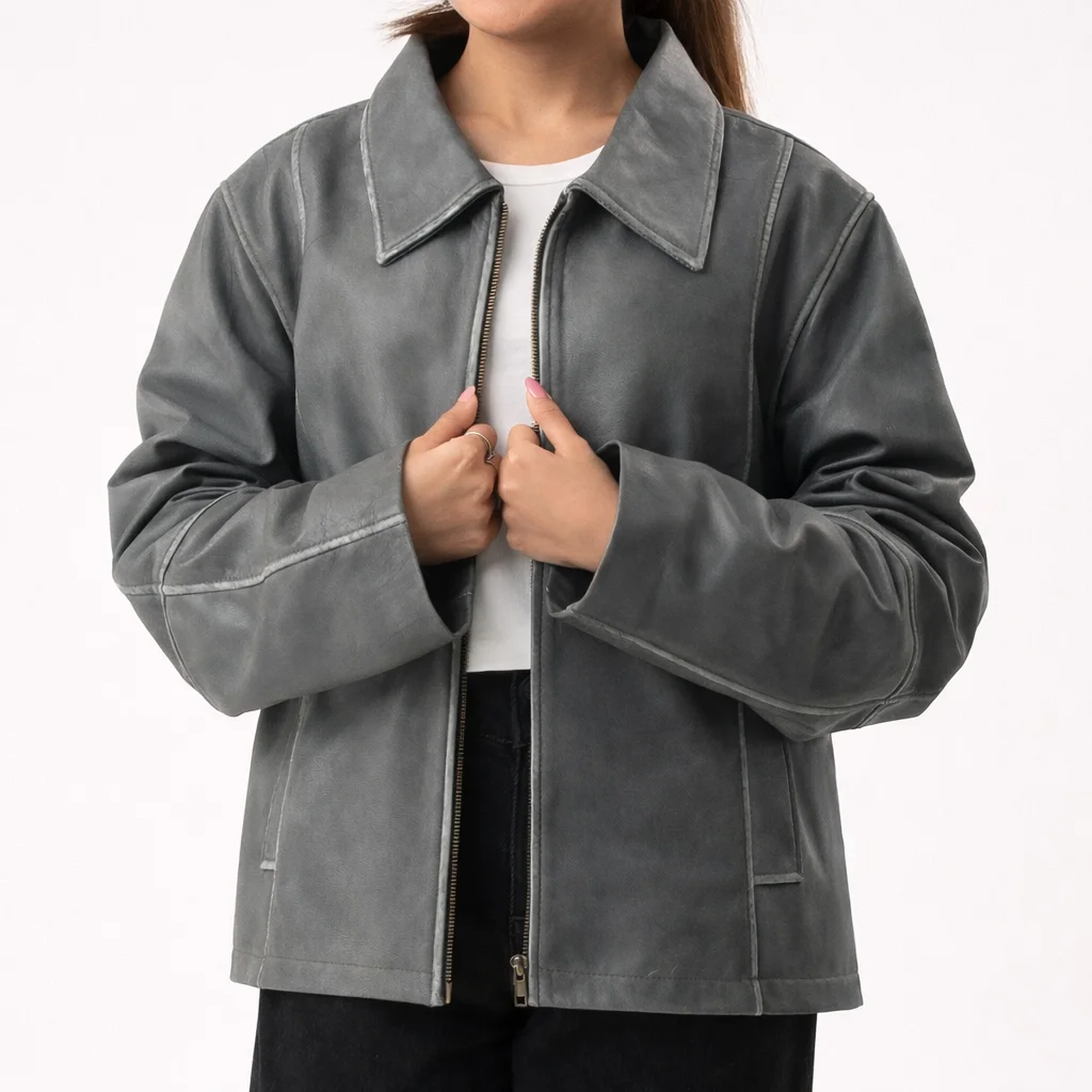 Be the first to review “EMPRESS Dark Grey Leather Jacket For Women”