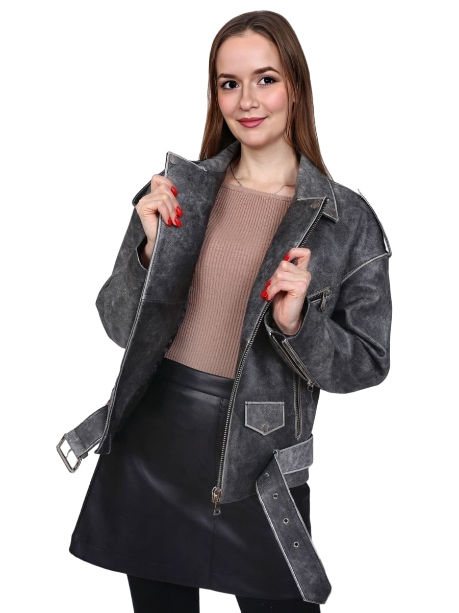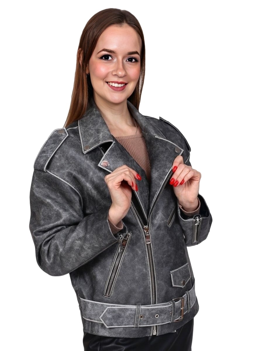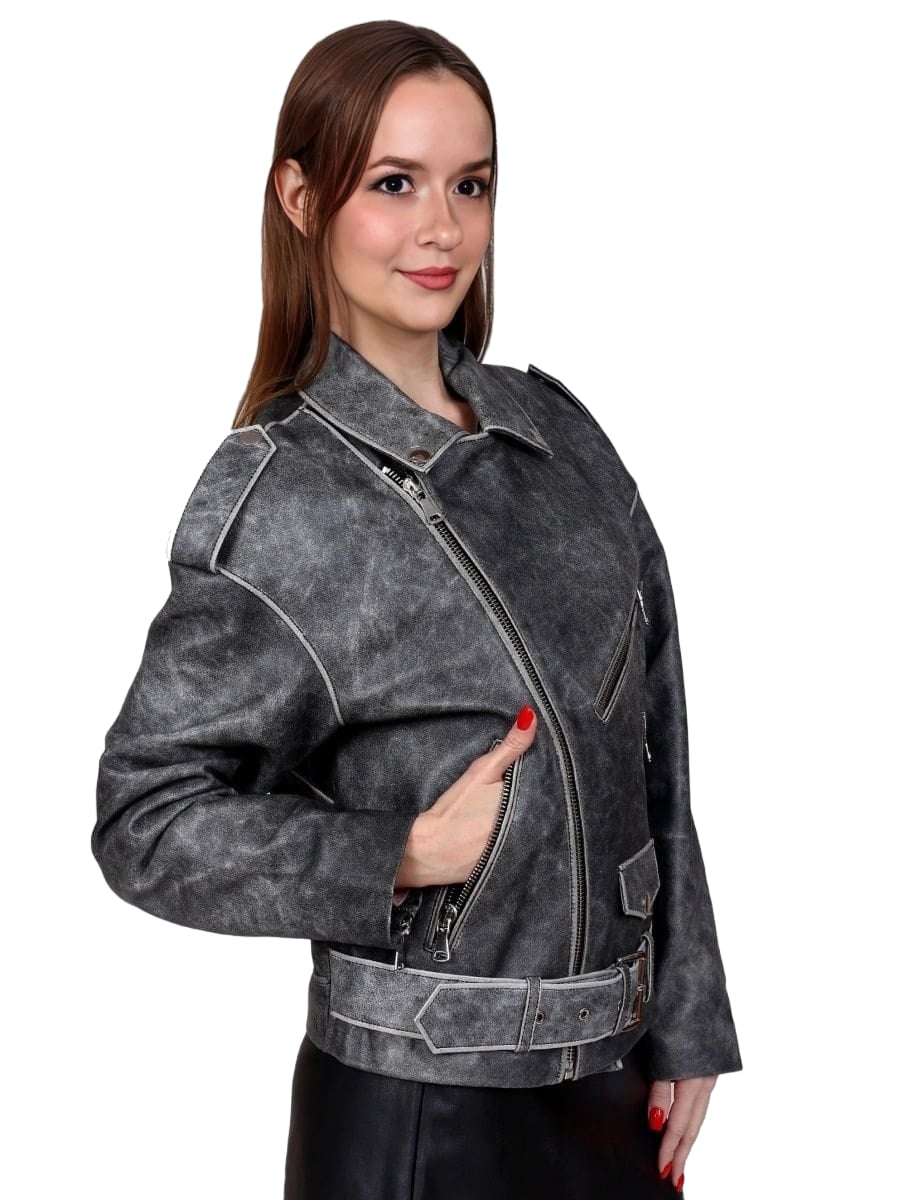 Be the first to review “FUSION Grey Leather Jacket For Women”