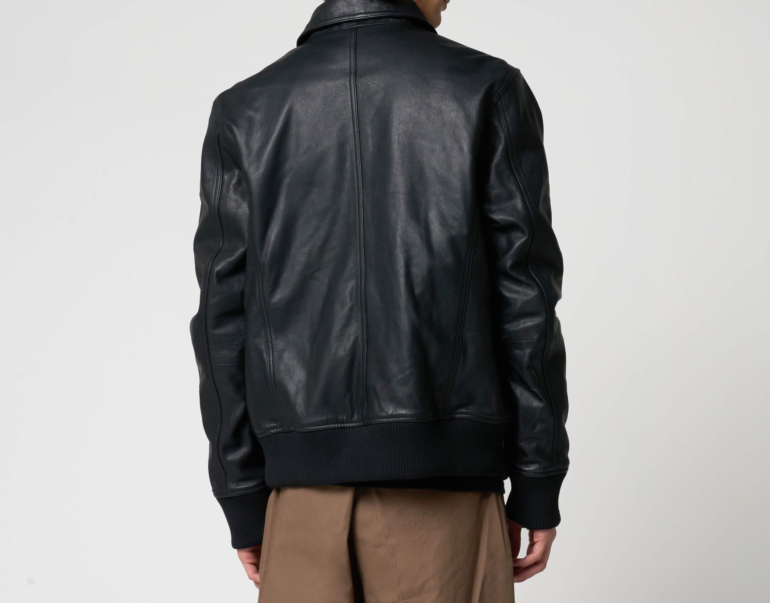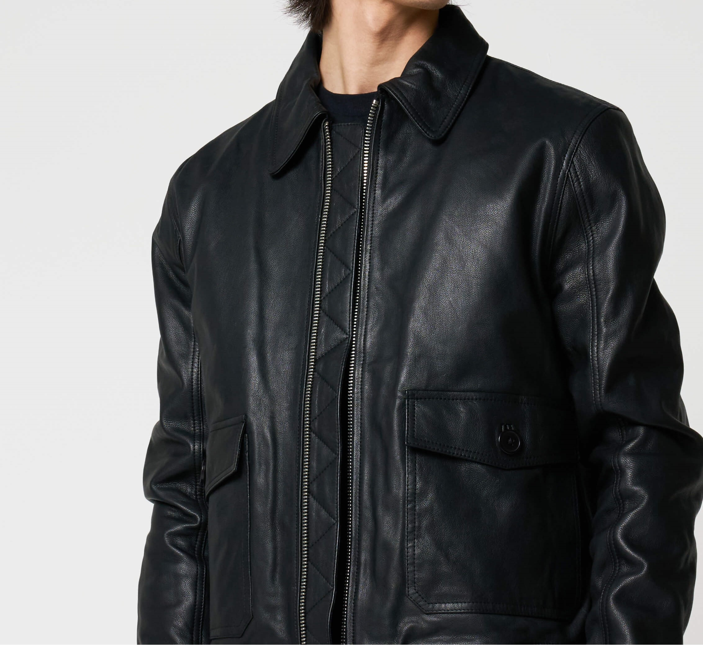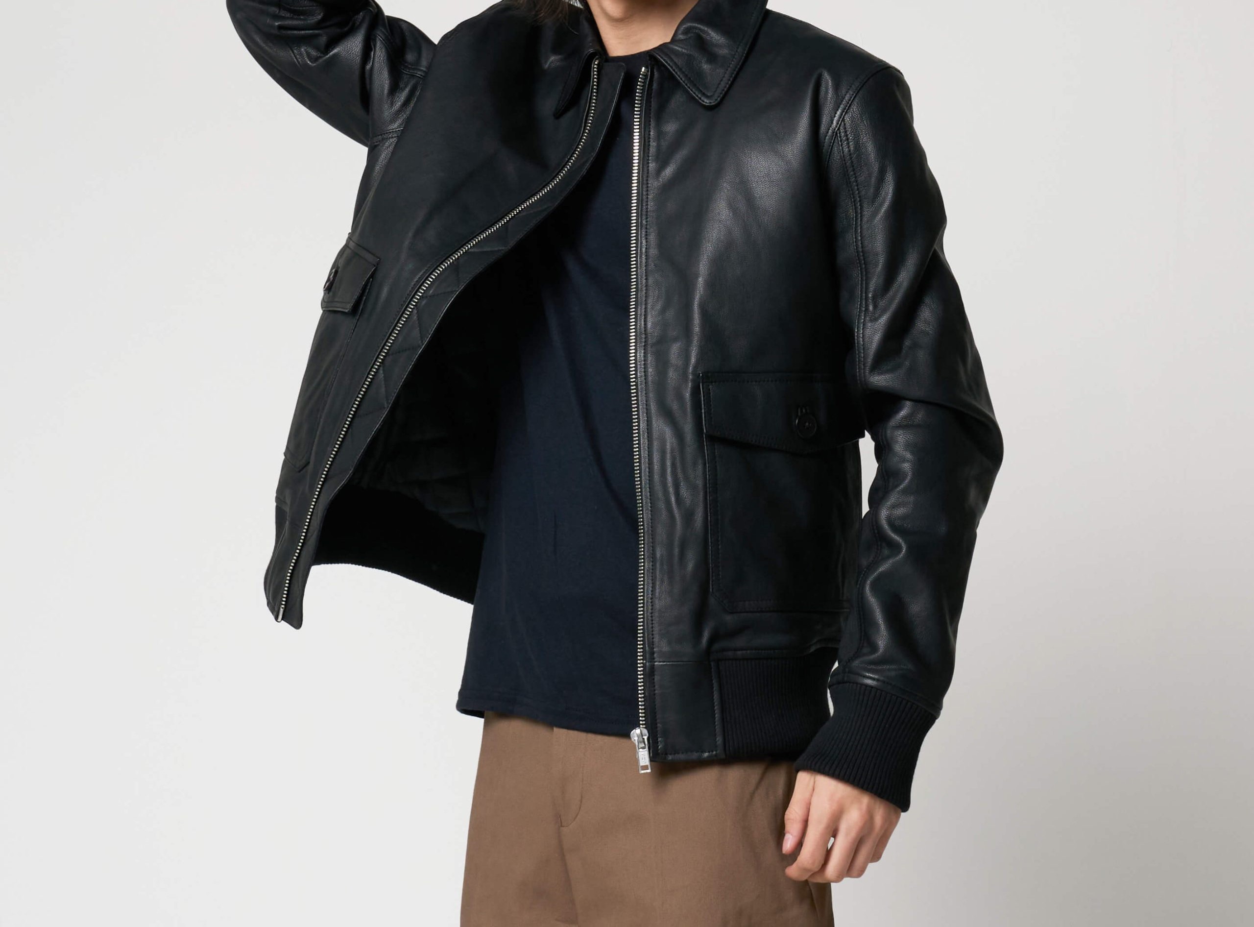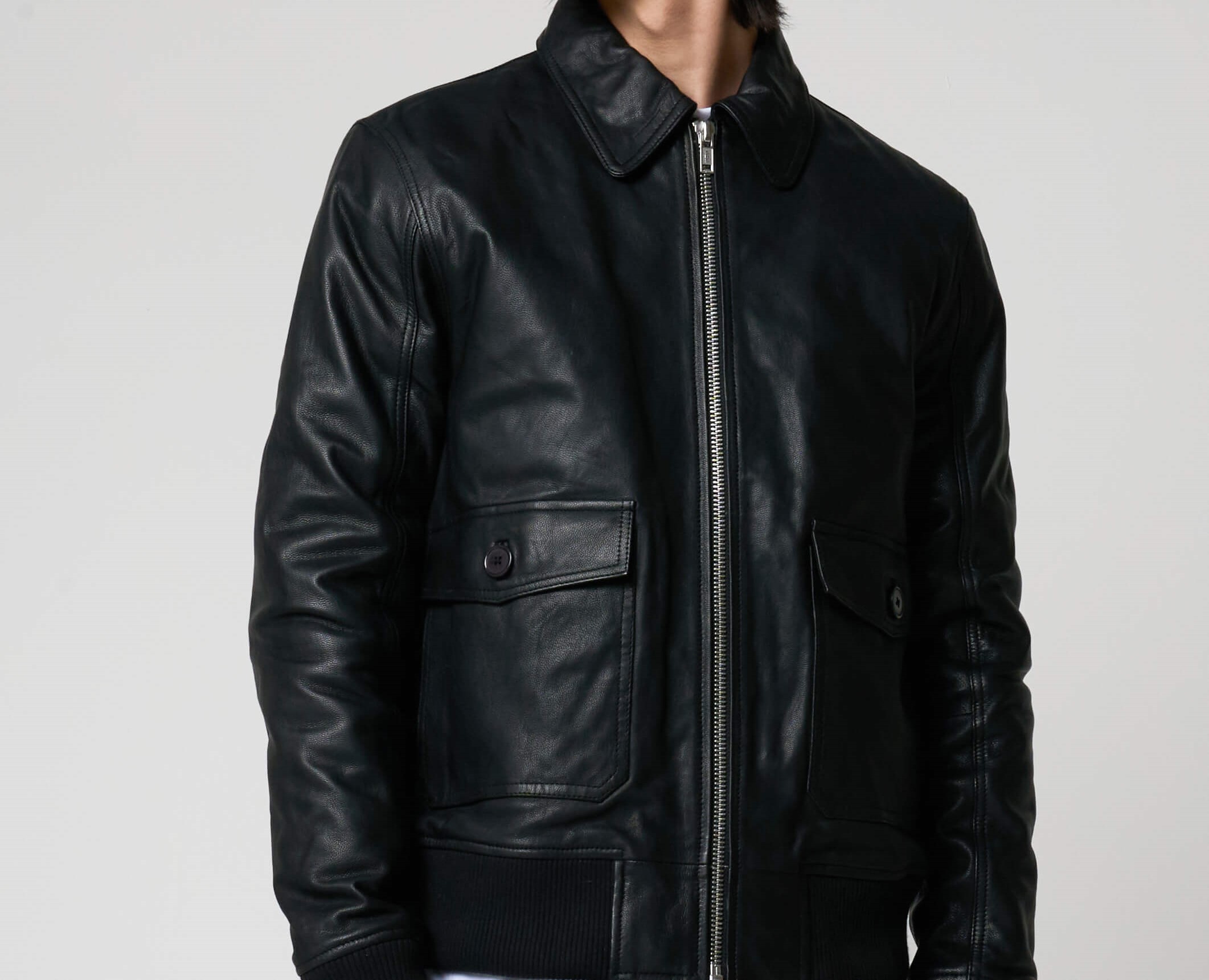 Mens Sheep Leather Patch Pocket Bomber Jacket