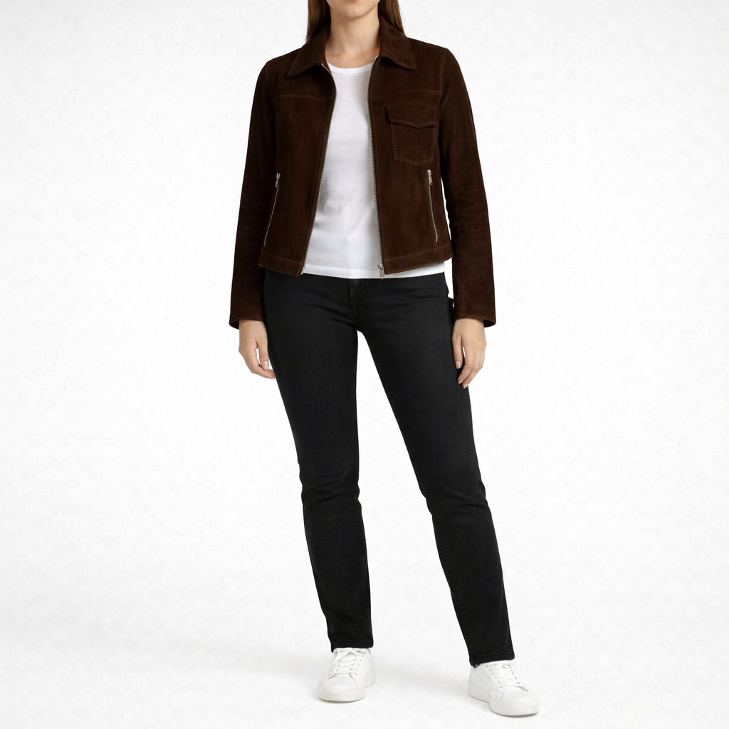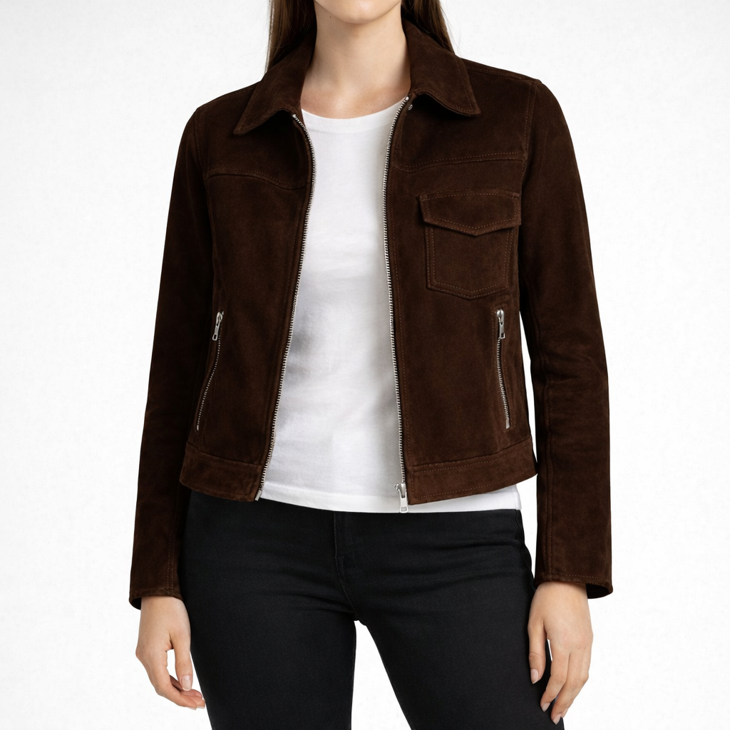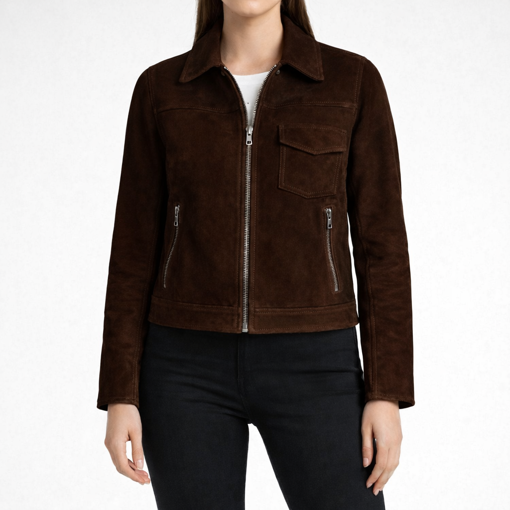 MOXIE Dark Brown Leather Jacket For Women