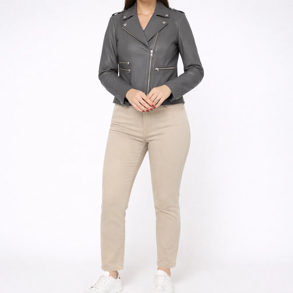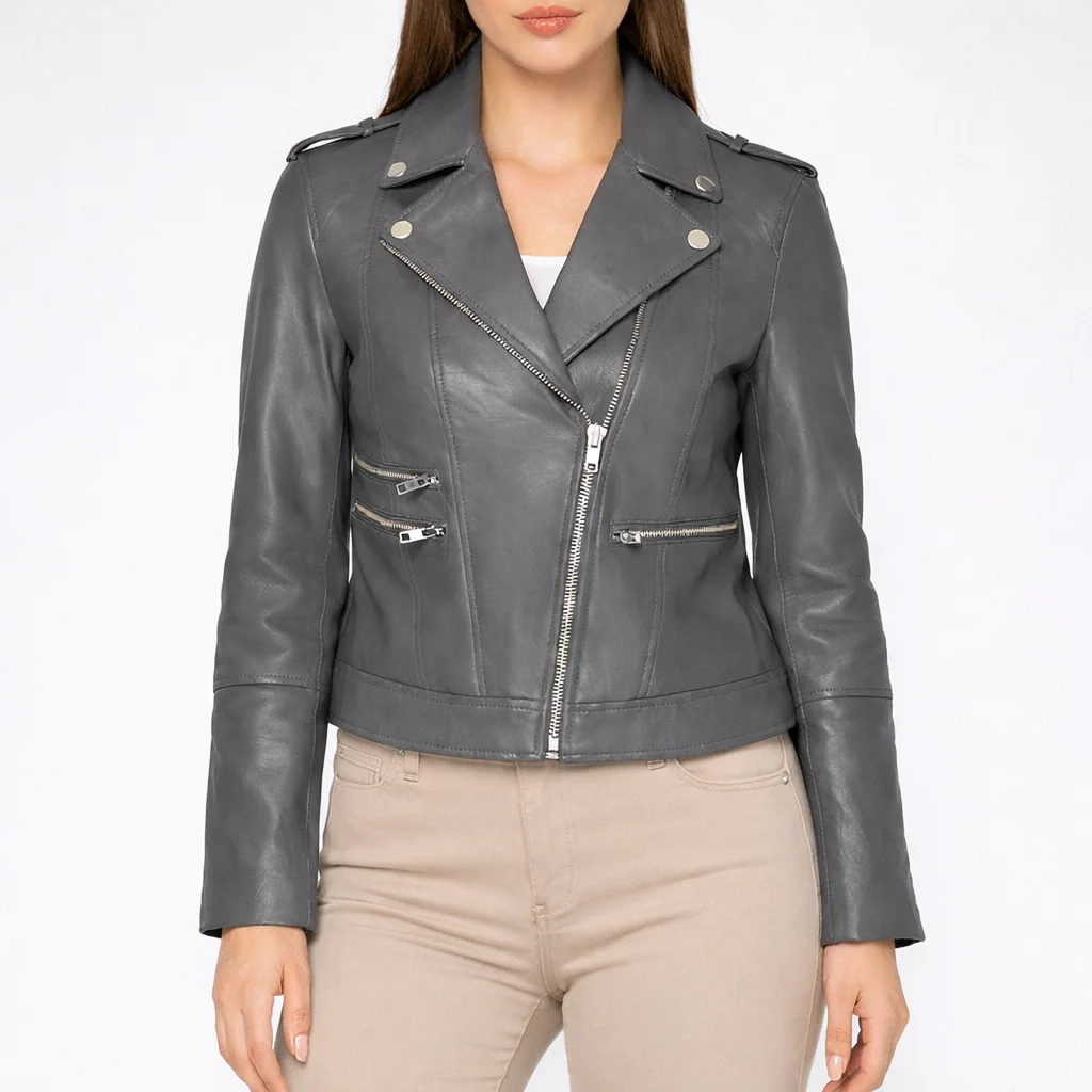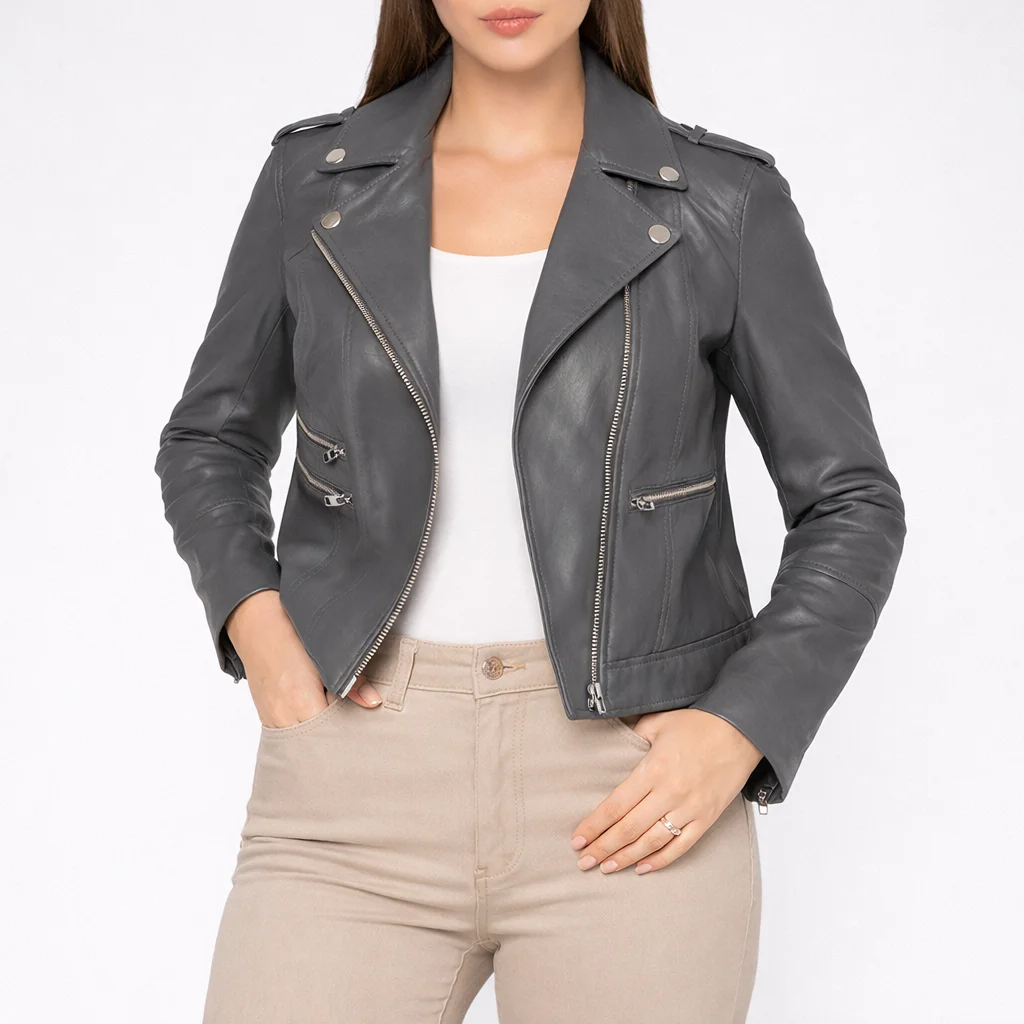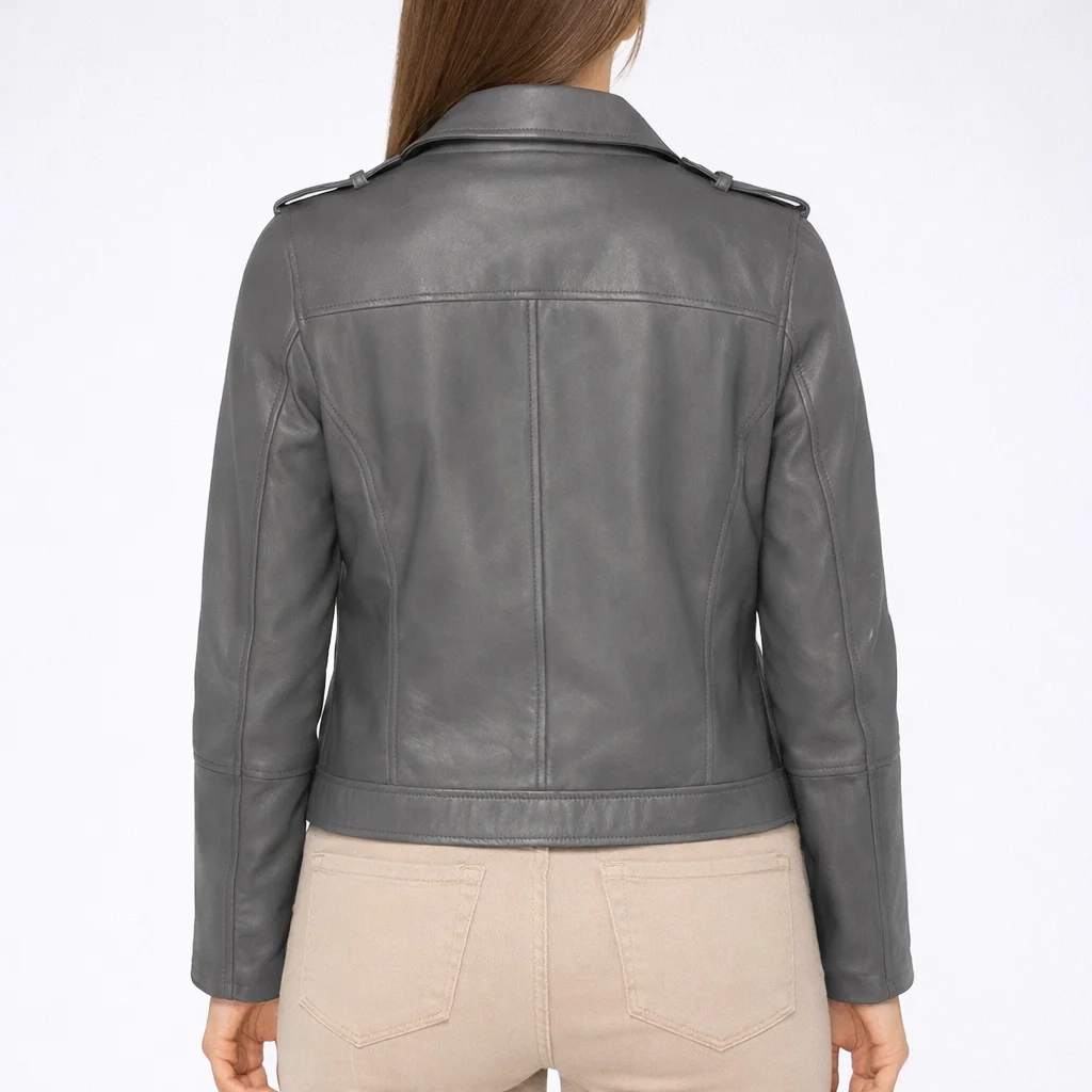Be the first to review “PHOENIX Grey Leather Jacket For Women”