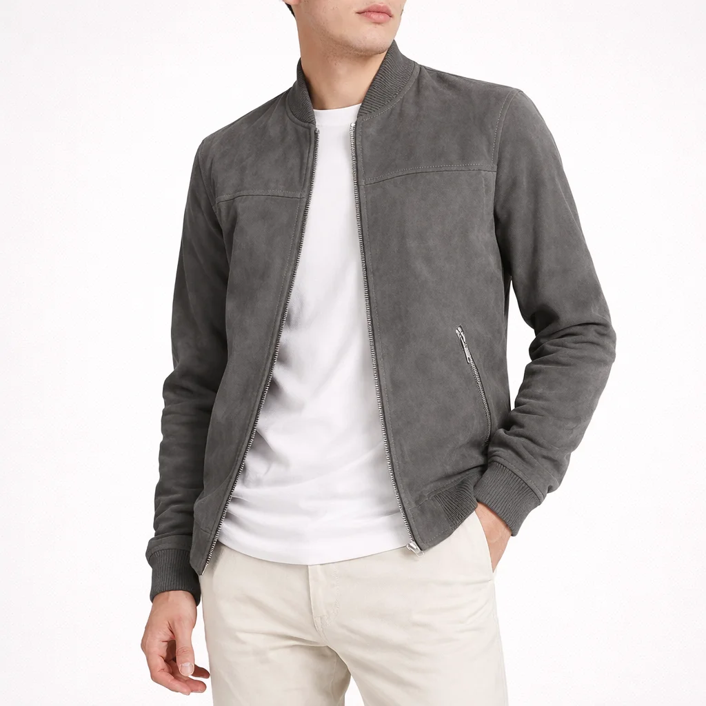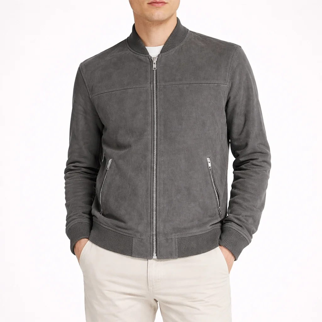 ROAMER Grey Suede Leather Jacket For Men