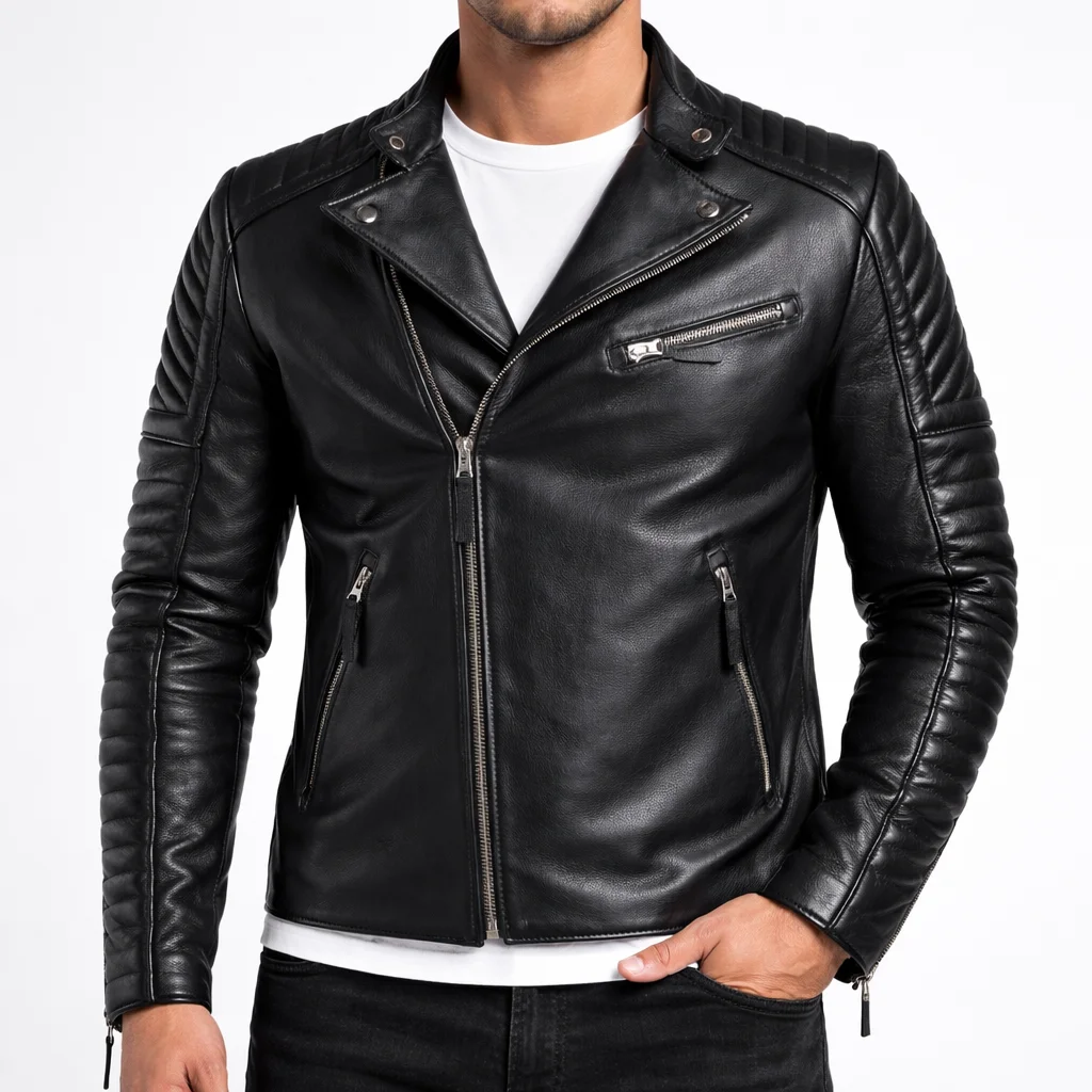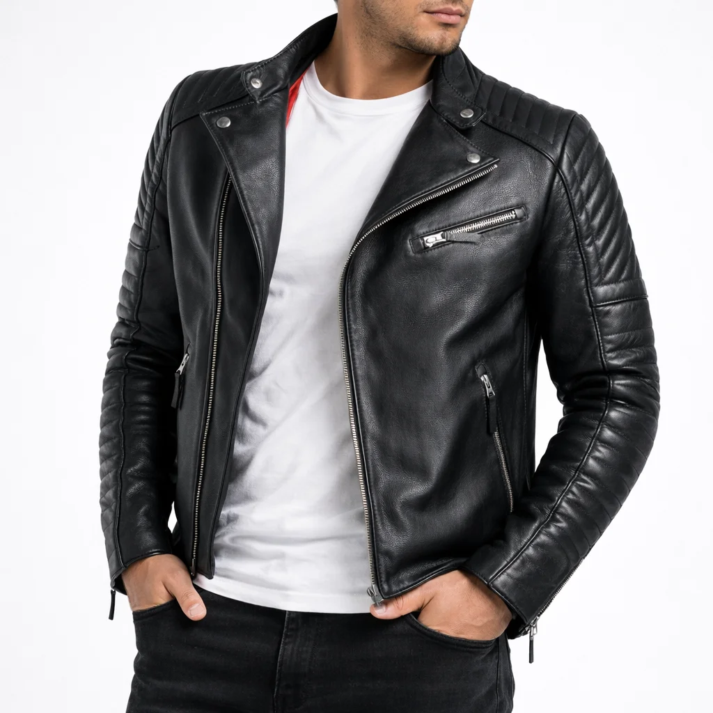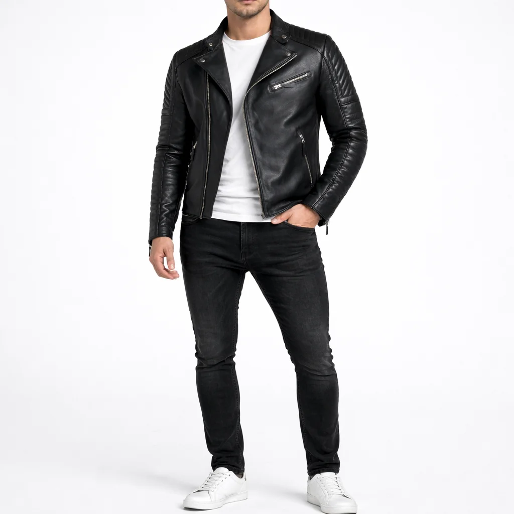TERRAIN Black Leather Jacket For Men