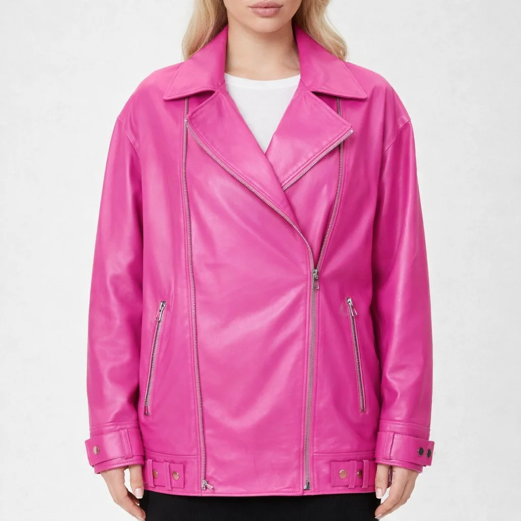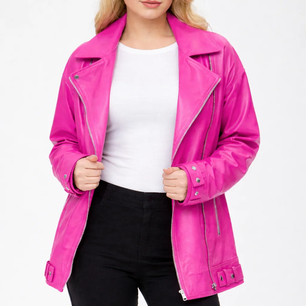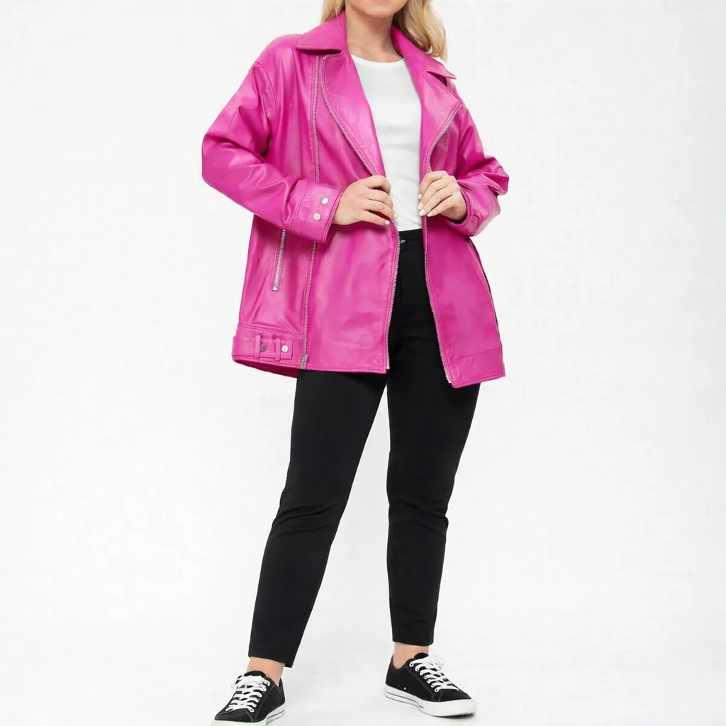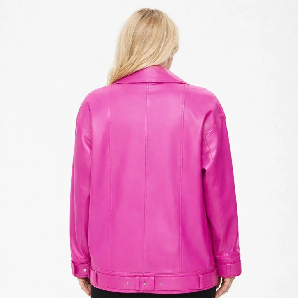 Be the first to review “VERVE Oversized Pink Leather Jacket For Women”