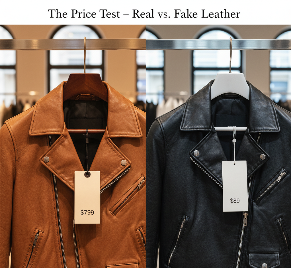 🔍 Pro Tip: If a leather jacket is advertised as genuine but seems too cheap, it’s probably fake.
