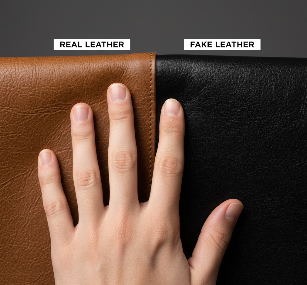 🔍 Pro Tip: Gently press your fingers into the surface. Real leather wrinkles and shows creases, while fake leather remains stiff and smooth.