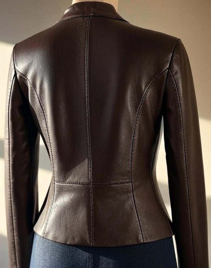 - Top-Grain Leather: The top layer is sanded down to remove marks. It is thinner and more flexible than full-grain. It is common in fashion jackets.